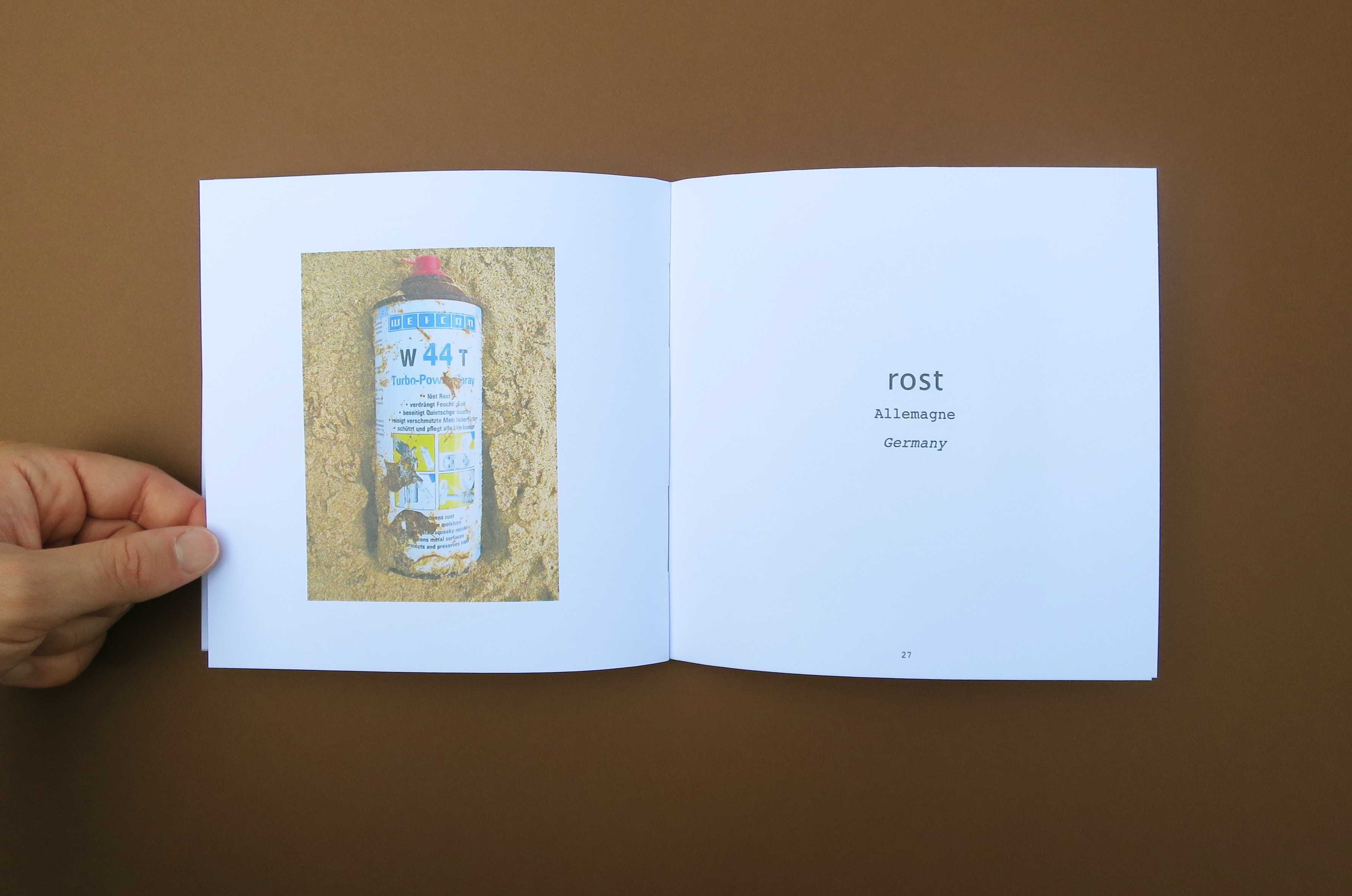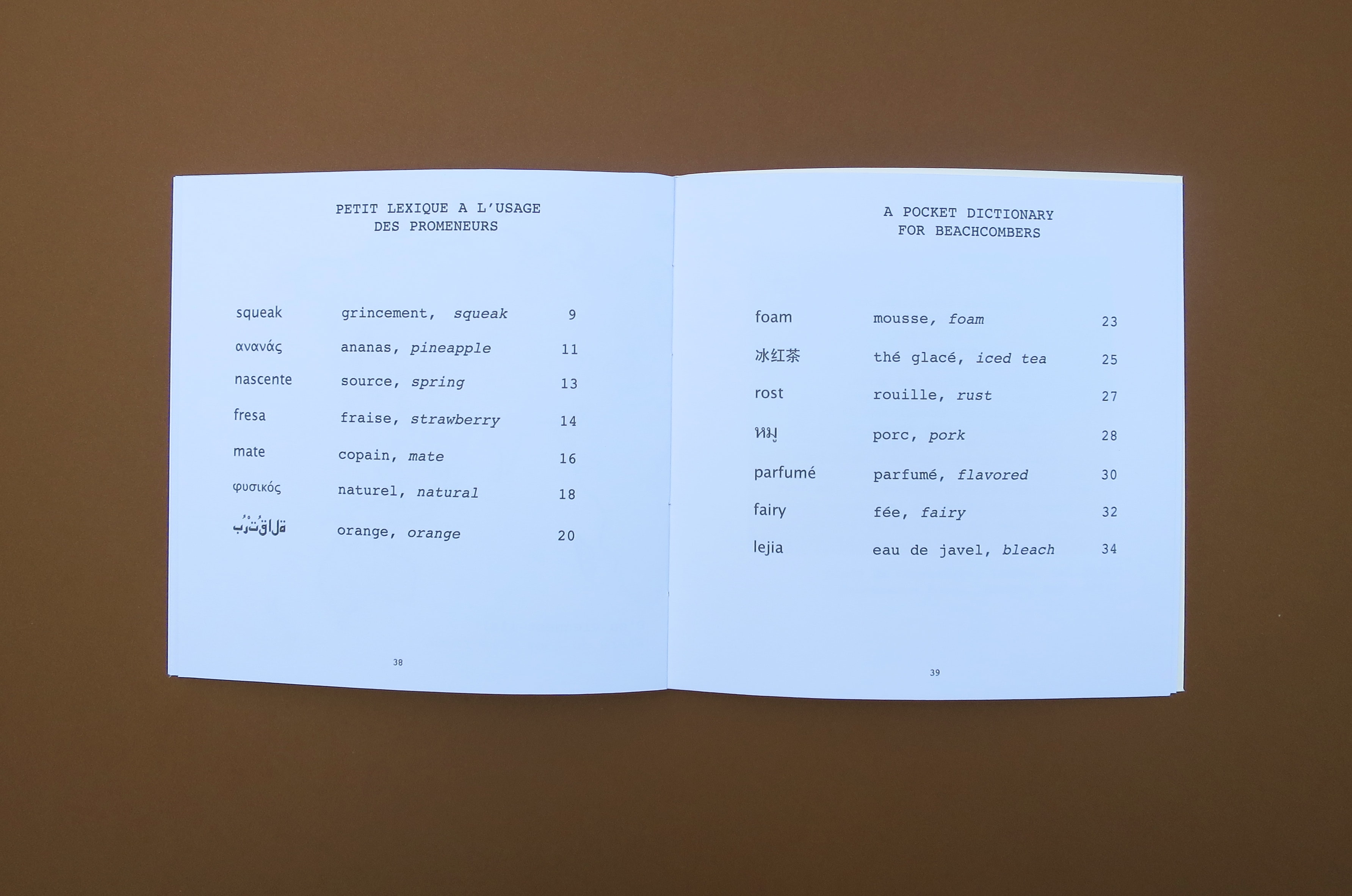 44 pages, 17 × 17 cm, 2015, new bilingual edition. Limited edition of 300 copies. Cardboard cover, sewn binding, inner pages printed on Centaure paper.