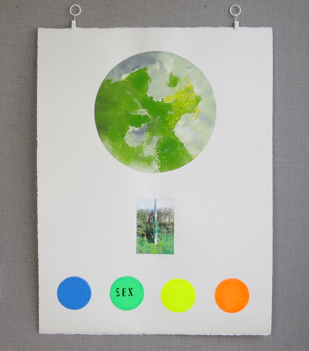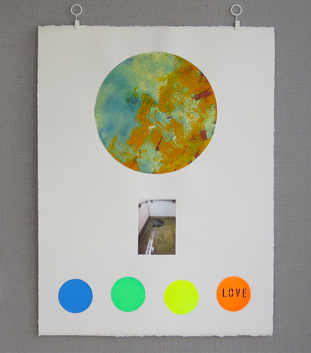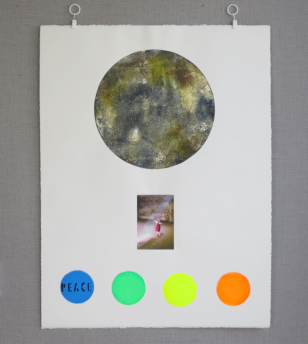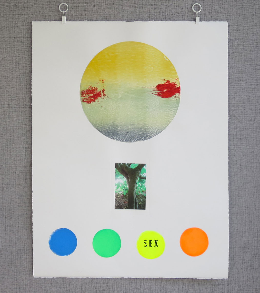 Série de quatre estampes originales format 50 × 65 cm, trois techniques juxtaposées (monotype, photographie sur chine collé et sérigraphie).