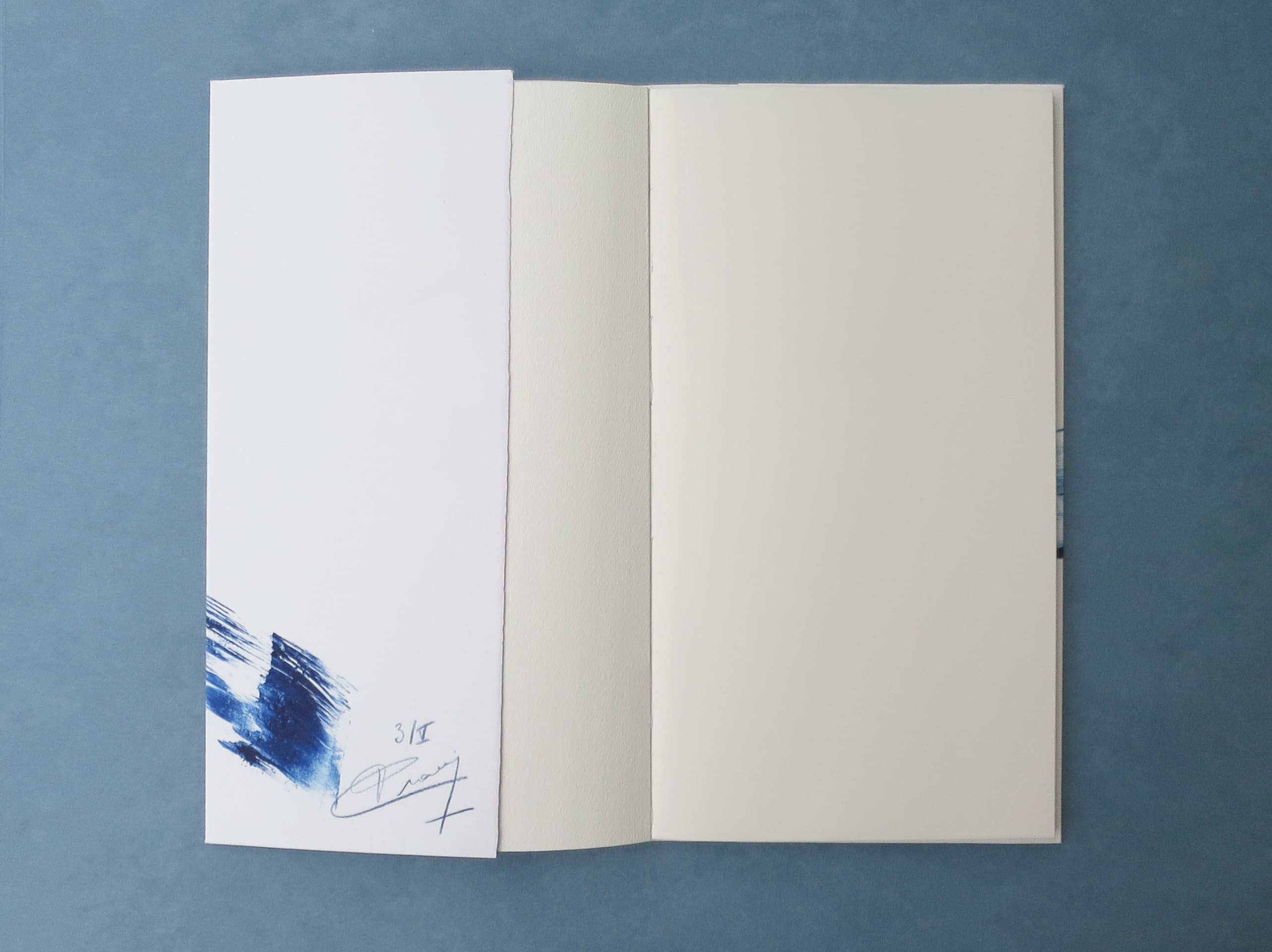 68 pages, 16,5 × 29 cm, 2014. Five copies printed on bulk paper. The covers are signed and numbered monotypes printed on Hahnemühle paper.
