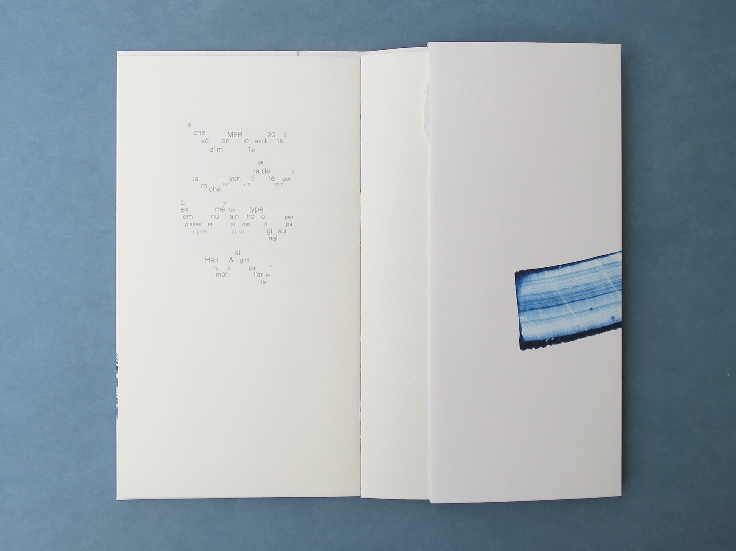 68 pages, 16,5 × 29 cm, 2014.Tiré à cinq exemplaires sur papier bouffant, avec pour couverture un monotype signé et numéroté, imprimé sur papier Hahnemühle.